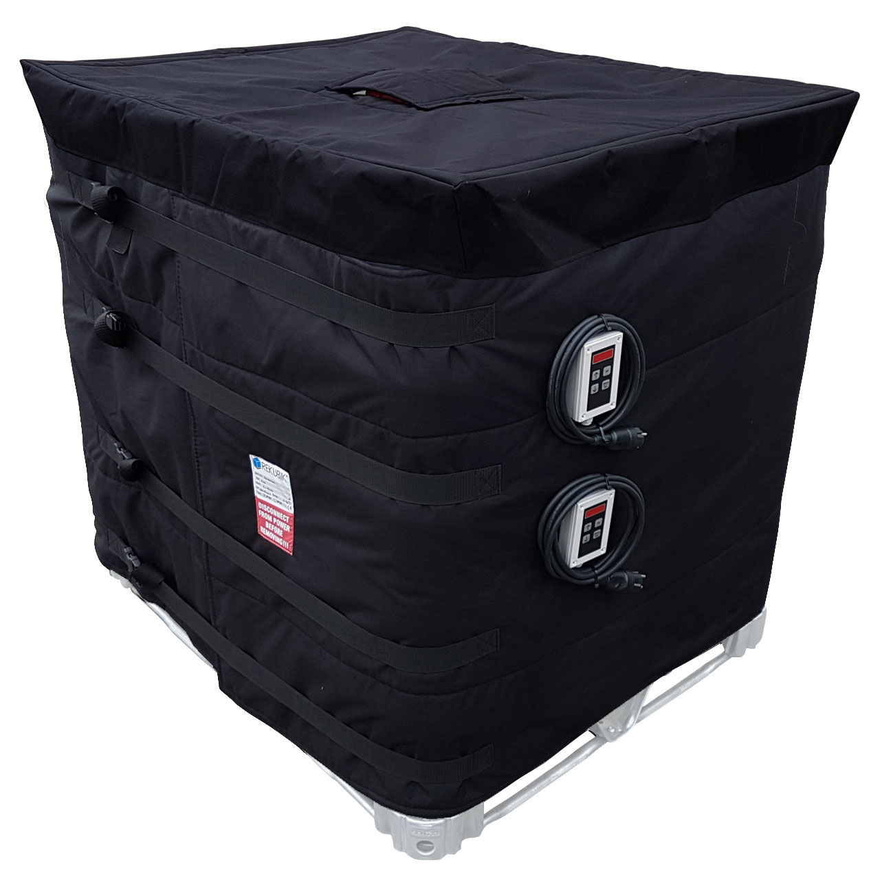 Der Heizmantel besteht aus einer soliden, langlebigen Leichtbaukonstruktion. Dank der verstellbaren Schnellspann-Gurtbänder lässt er sich einfach und sicher an allen gängigen 1000 l-Standard-Containern befestigen. Der Heizer eignet sich ebenfalls perfekt für den Transport, wenn die Flüssigkeit eine bestimmte Temperatur oder Viskosität erfüllen muss.