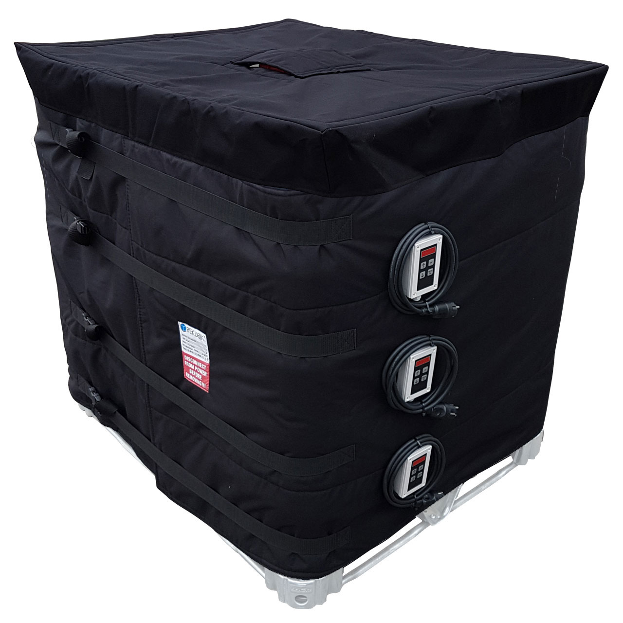 Der Heizmantel besteht aus einer soliden, langlebigen Leichtbaukonstruktion. Dank der verstellbaren Schnellspann-Gurtbänder lässt er sich einfach und sicher an allen gängigen 1000 l-Standard-Containern befestigen. Der Heizer eignet sich ebenfalls perfekt für den Transport, wenn die Flüssigkeit eine bestimmte Temperatur oder Viskosität erfüllen muss.
